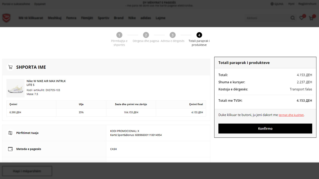 Më pas shporta do të rifreskohet dhe në të do të vini re çmimin e reduktuar me SPORT&BONUS.