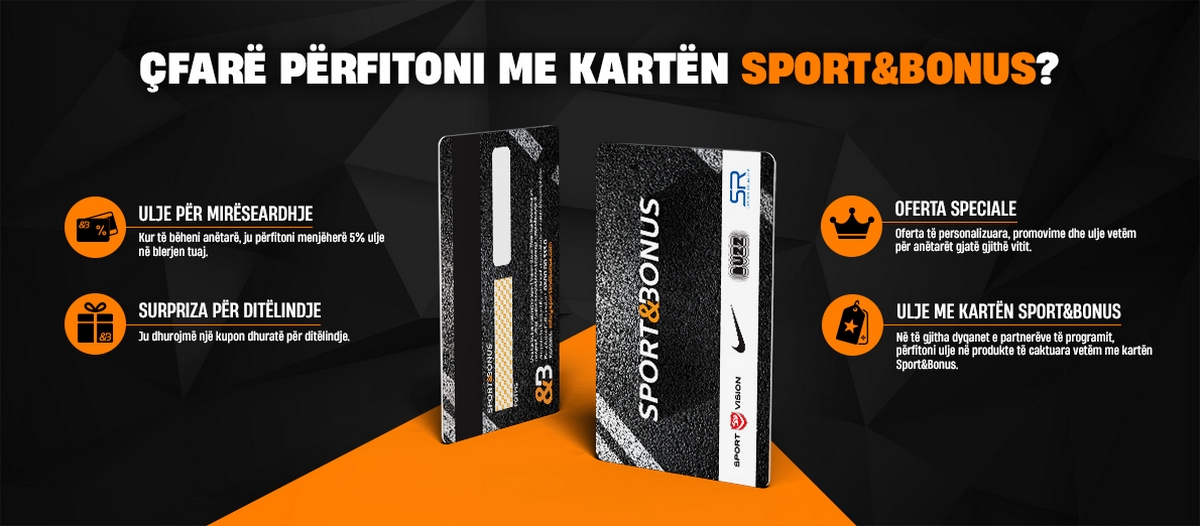 - Bonus me çdo llogari! Përdorni kartën tuaj SPORT&BONUS në çdo blerje dhe përfitoni një ulje në blerjen tuaj të radhës,