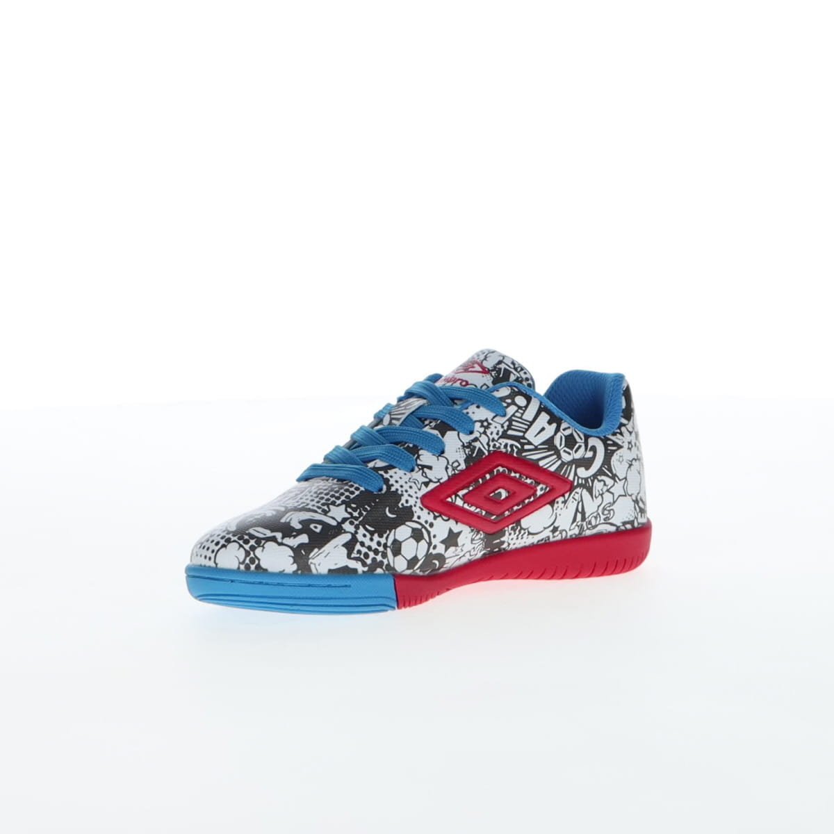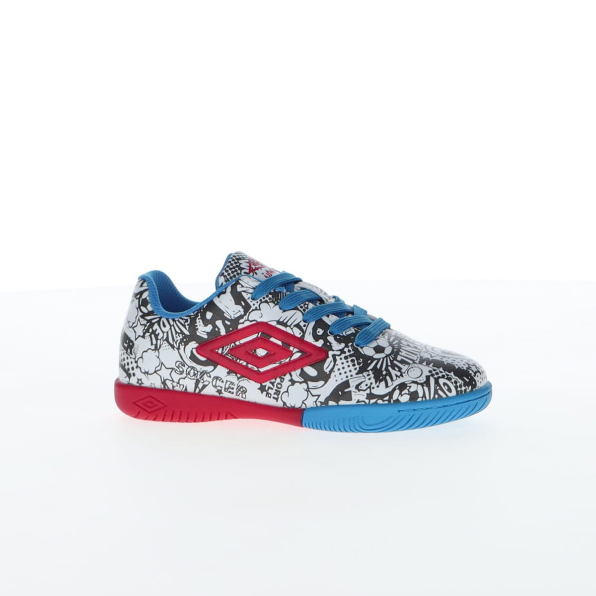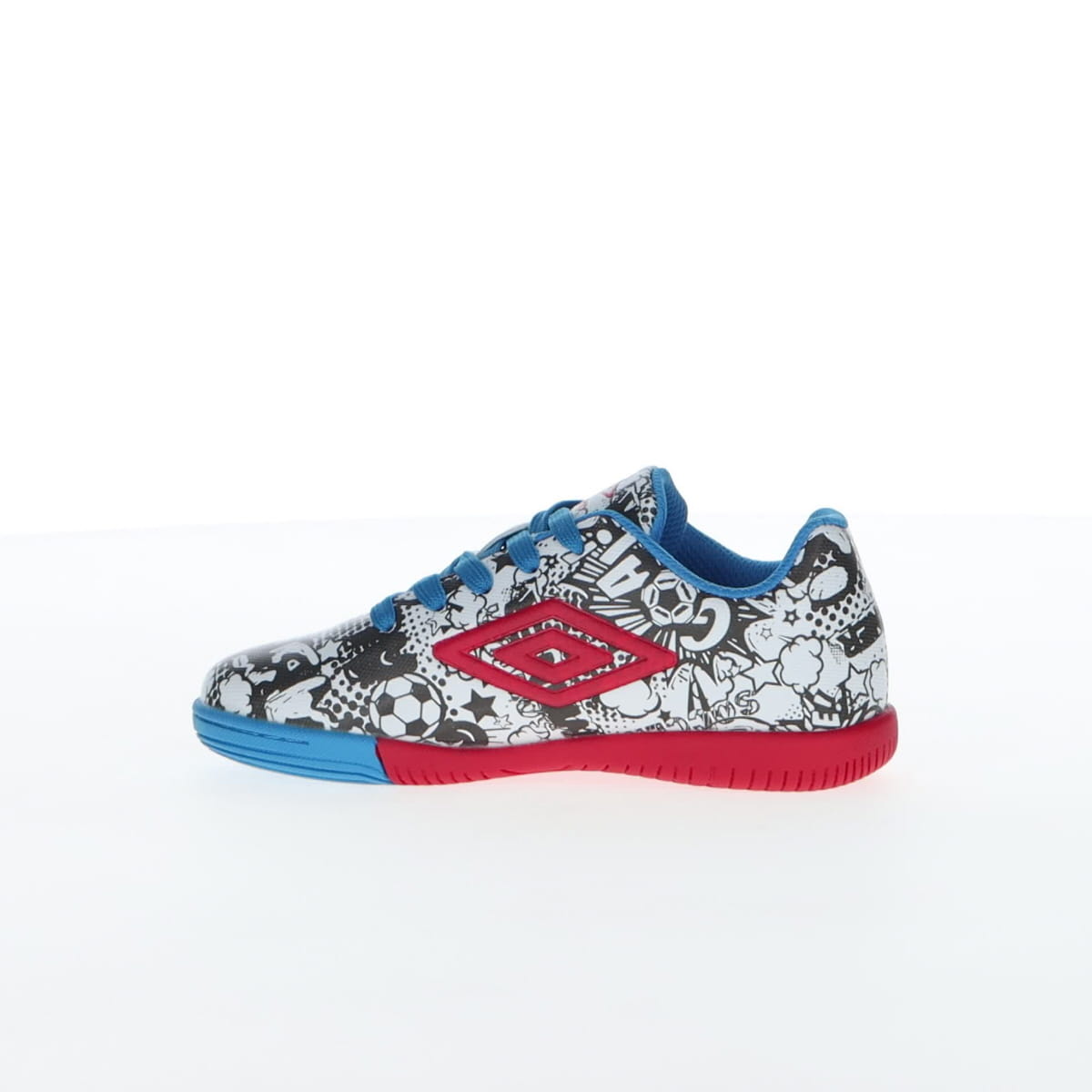 Umbro CARTOON се детски патики наменети за млади фудбалски ентузијасти. Овој модел сигурно ќе стане омилен пар патики на вашето малечко. Со необичен дизајн со комични мотиви, овие патики ќе бидат полн погодок на теренот и ќе ви овозможат да ги постигнете најубавите голови во овој необичен и удобен модел. Горниот дел е изработен од полиуретан, кој обезбедува цврстина, но и подобар прием и контрола на топката при дриблинг. Гумениот ѓон обезбедува зафат и овозможува изведување на сите потези на теренот. Спецификација: