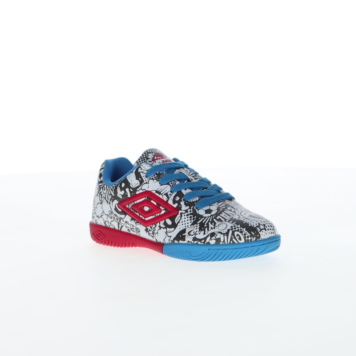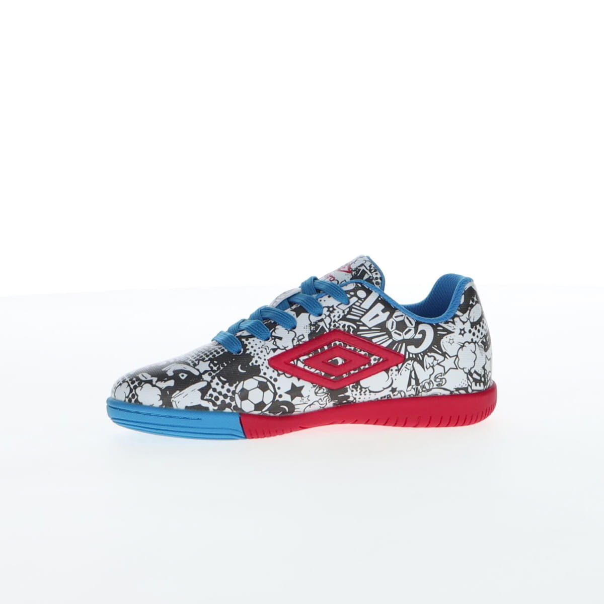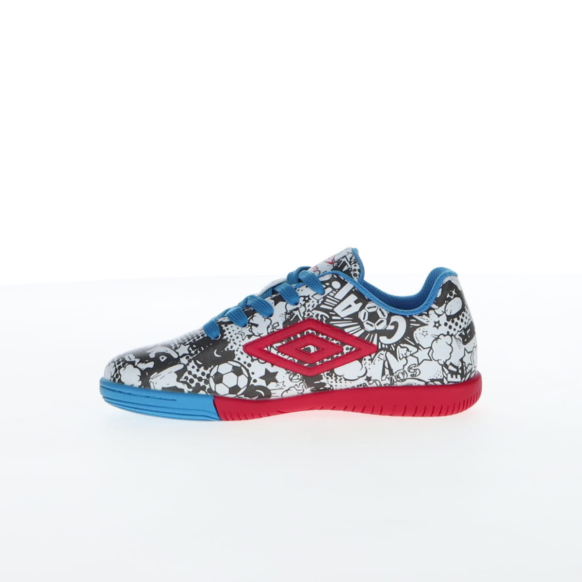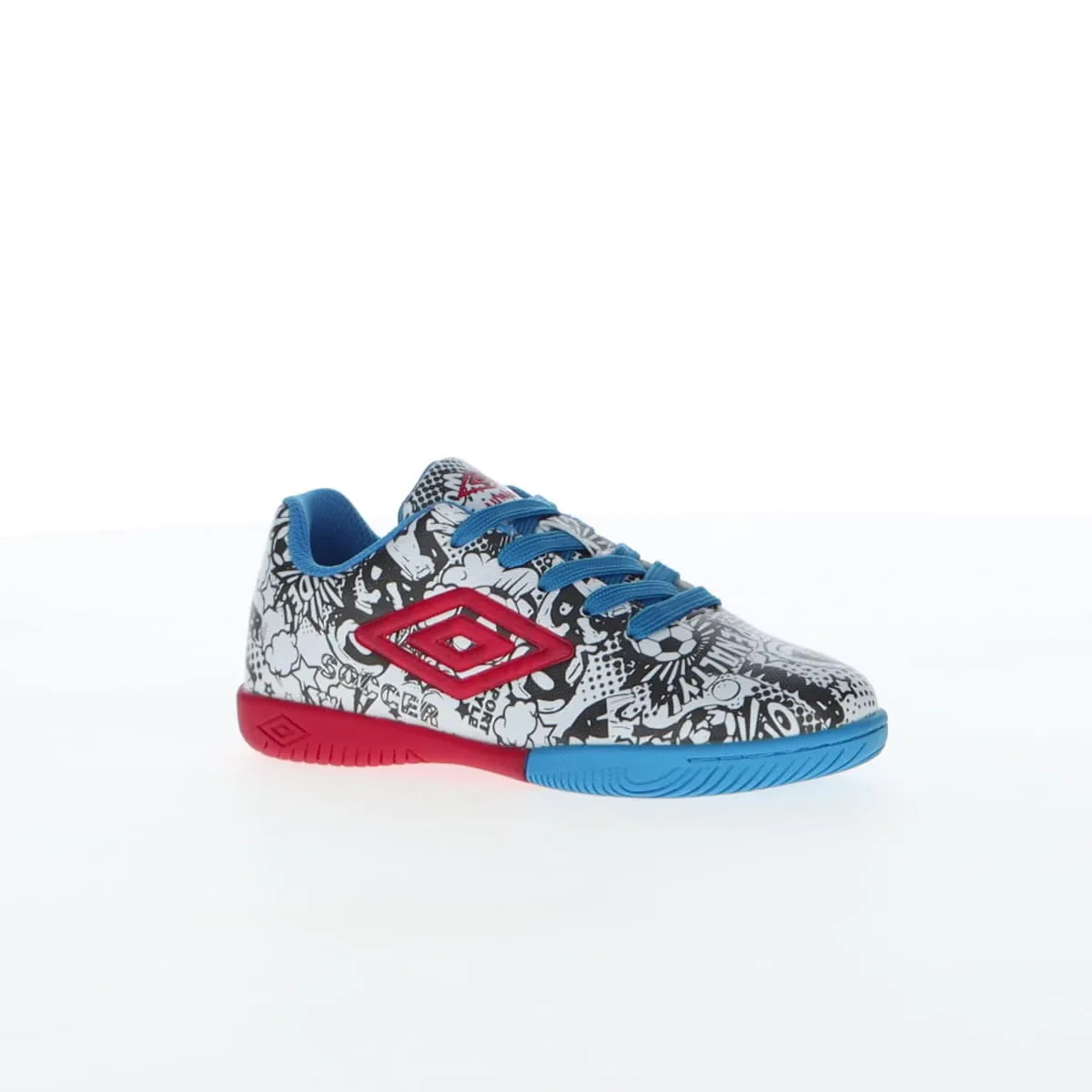 Umbro CARTOON се детски патики наменети за млади фудбалски ентузијасти. Овој модел сигурно ќе стане омилен пар патики на вашето малечко. Со необичен дизајн со комични мотиви, овие патики ќе бидат полн погодок на теренот и ќе ви овозможат да ги постигнете најубавите голови во овој необичен и удобен модел. Горниот дел е изработен од полиуретан, кој обезбедува цврстина, но и подобар прием и контрола на топката при дриблинг. Гумениот ѓон обезбедува зафат и овозможува изведување на сите потези на теренот. Спецификација: