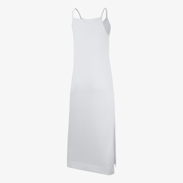 Изработен е од најквалитетен памук кој создава чувство на пријатност при допир со кожата. Фустанот е долг, а шлицевите од колената надолу обезбедуваат пријатна проветреност, непречен чекор и покриеност за време на сончевите летни денови. Продолжените рабови ги покриваат и штитат глуждовите и придонесуваат за модерна спортска елеганција.