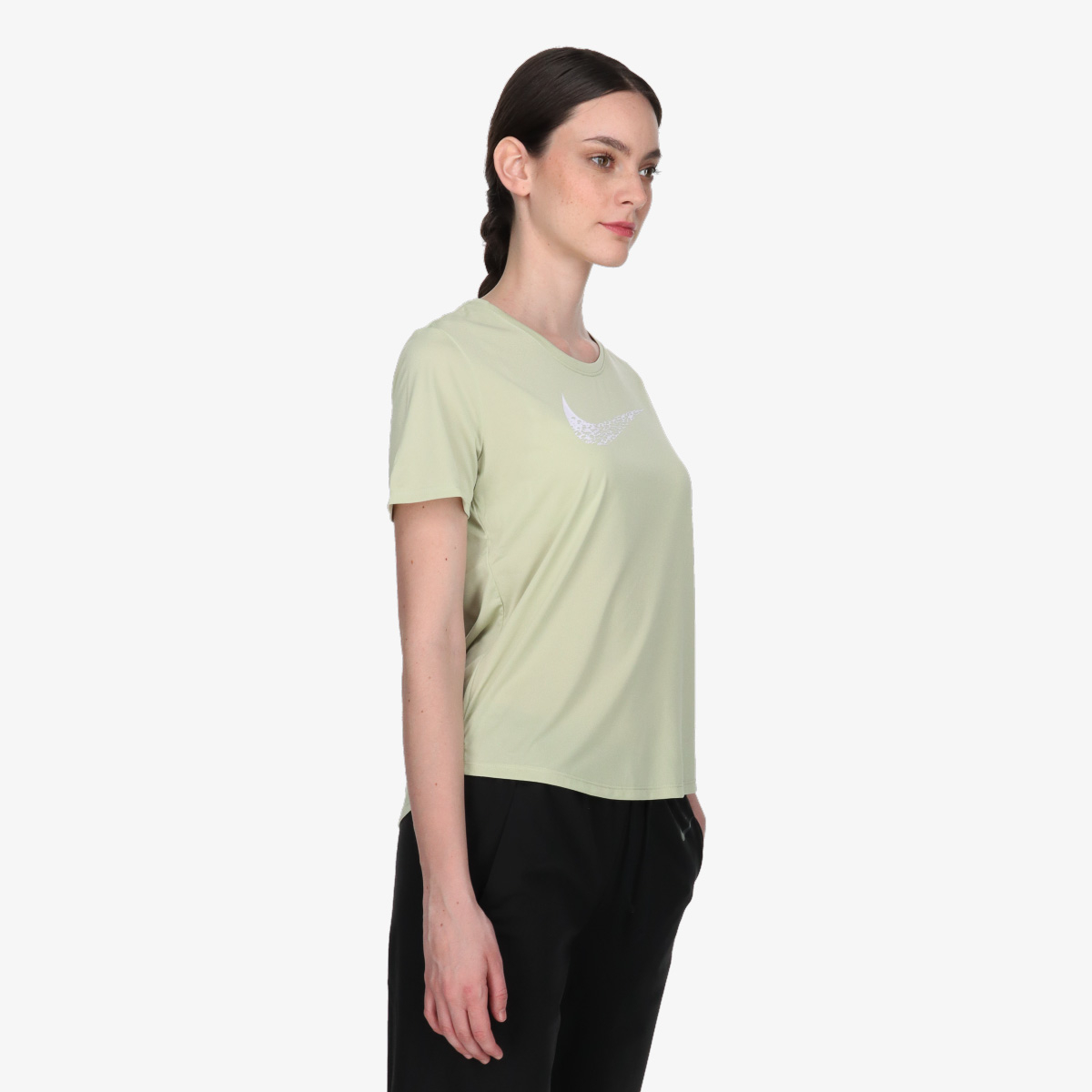 Nike Swoosh женската маица е дизајнирана за сите љубители на трчањето и спортот. Производот е направен од 100% рециклиран полиестер, а покрај тоа што се грижиме за нашата планета, материјалот од кој ја направивме е исклучително пријатен и ви ја обезбедува удобноста која ја заслужувате. Технологијата Dri-FIT е тука за отстранување на секоја капка пот што се обидува да ви застане на патот. Издолжениот заден раб ќе придонесе за ласкав изглед и чувство на сигурност каде ѝ да тренирате.