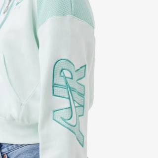 Со удобен крој и скратена должина, женскиот дуксер Nike Air е направен лесно да се комбинира со вашите омилени хеланки. Полу-четканата ткаенина од руно има мрежести панели за спортски изглед. Испечатеното лого на Nike Air на градите нуди меко чувство. Прилагодливата капа ви овозможува да го персонализирате вклопувањето.